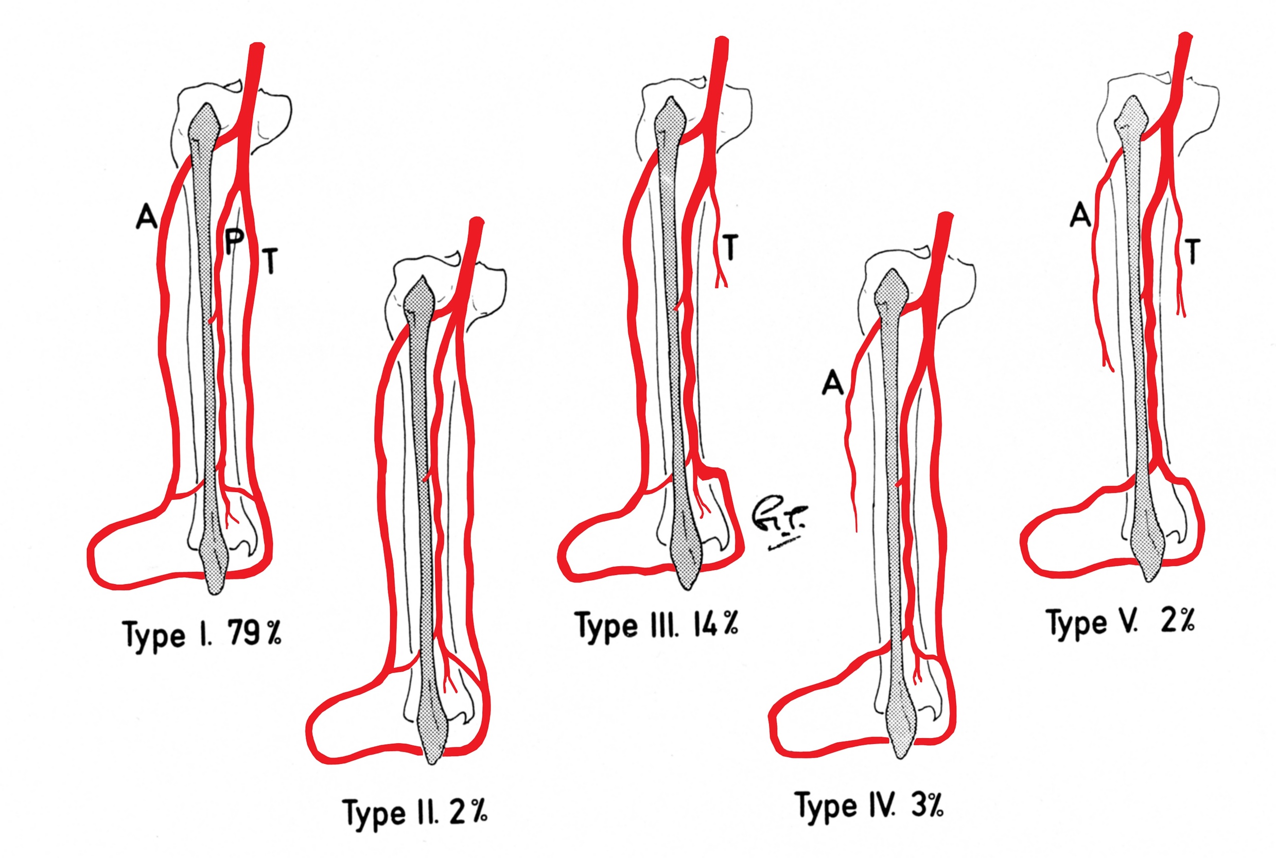 Angiography: first it offers the surgeon a choice between donor legs. Not only may it reveal the presence of a peronea magna, but for example (i) a longer peroneal pedicle as shown by the early division of the tibioperoneal trunk seen in Figure 9 (Type 2) or (ii) vascular disease. Atheroma with obstruction of the beginning of the peroneal artery is not uncommon. However, it is often a short segment that is involved and the remainder of the artery may still be available.